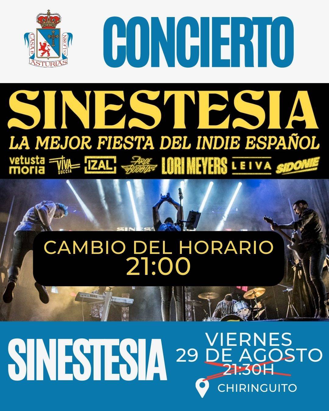 Adelanto del concierto de Sinestesia 28/08/2025 El concierto del grupo Sinestesia de este viernes se adelanta a las 21:00h. Os esperamos con las mejores versiones del indie español.