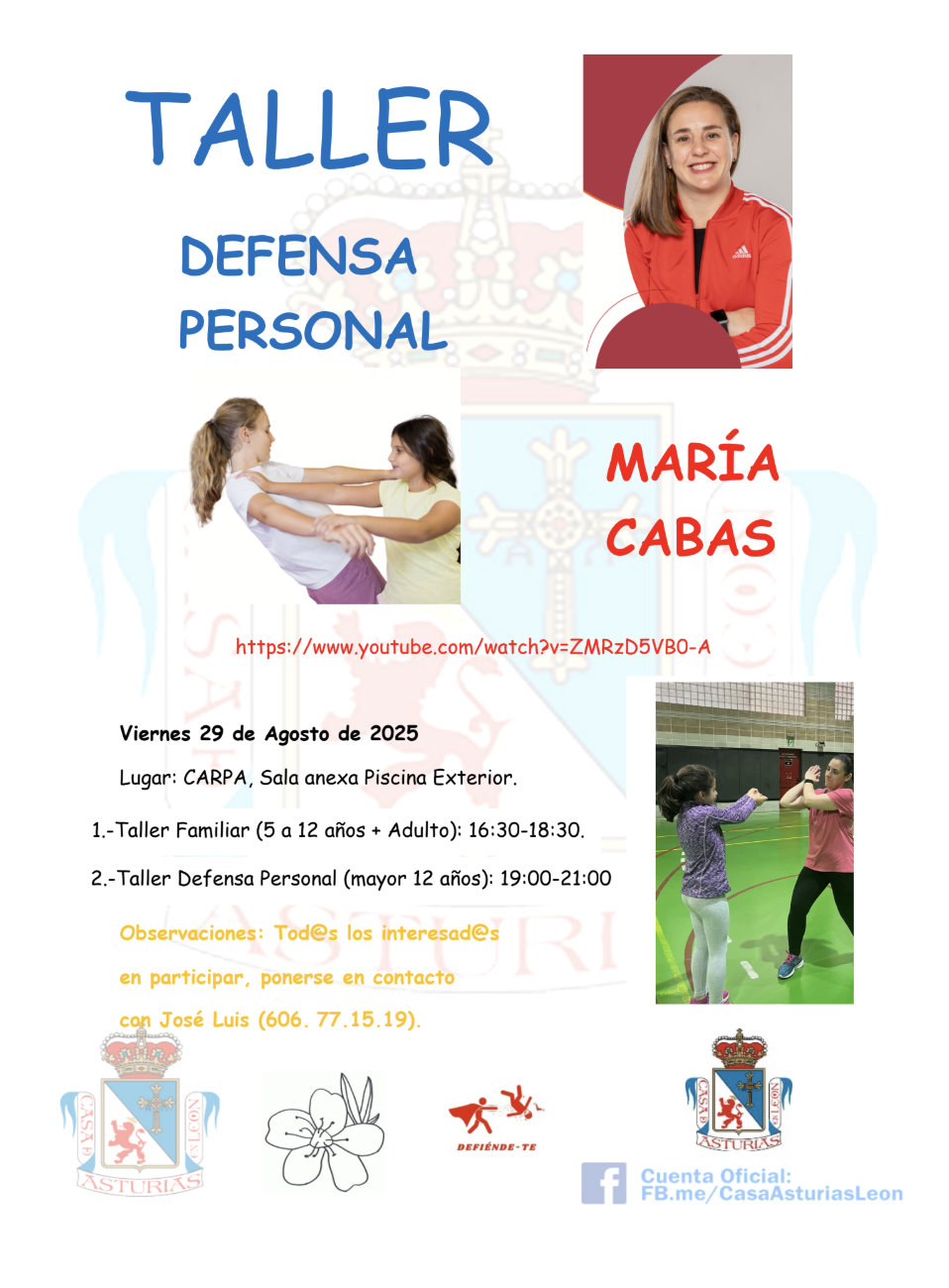 • Taller Defensa Personal (mayores de 12 años) 19:00-21:00 h