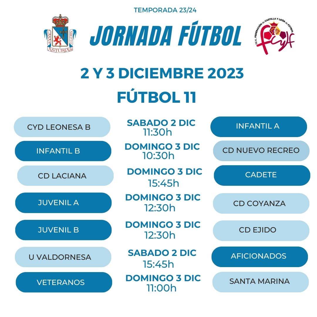 Horarios del fin de semana de los equipos de fútbol (2 y 3 diciembre) 29/11/2023 Estos son los horarios de nuestros equipos de fútbol para este fin de semana (2 y 3 diciembre).