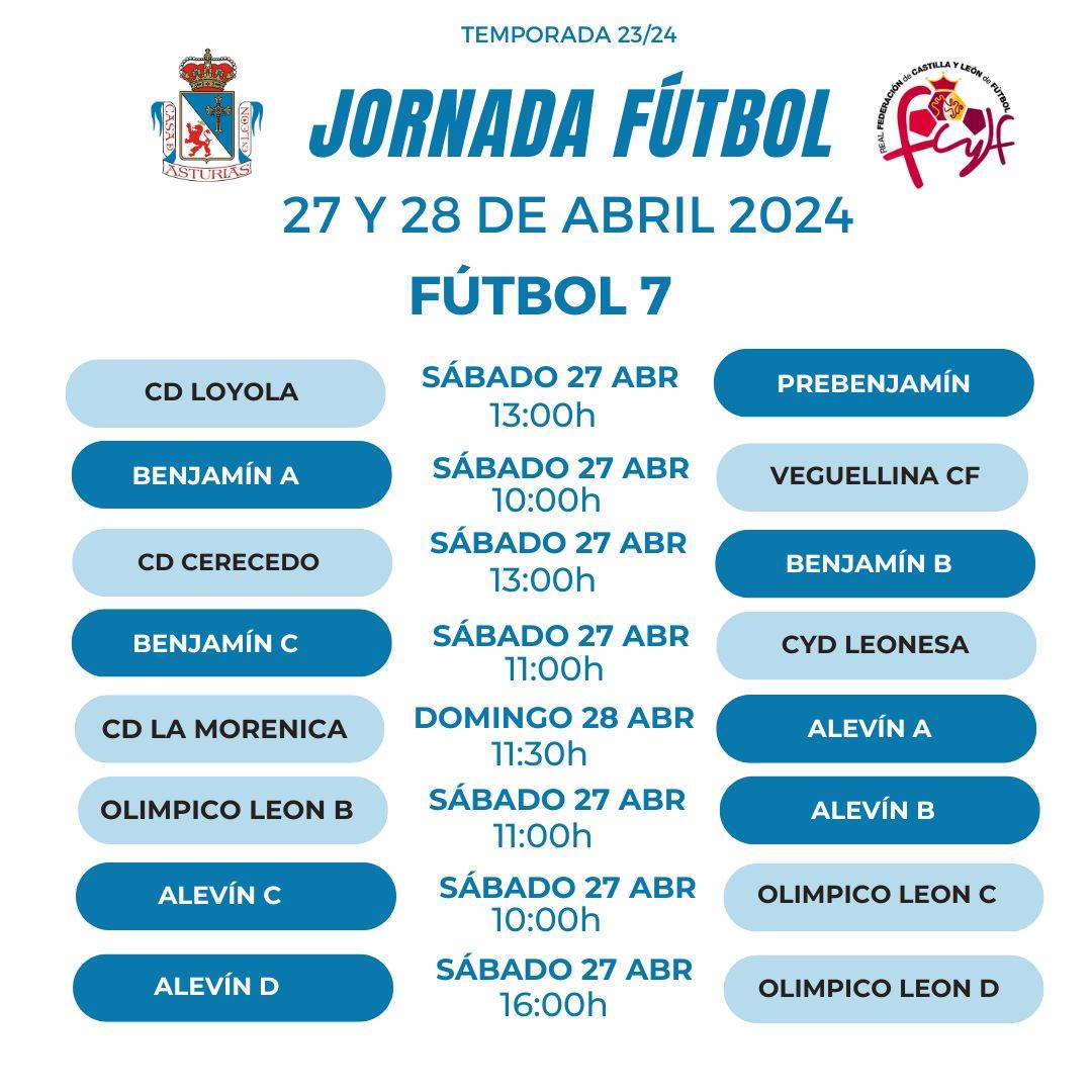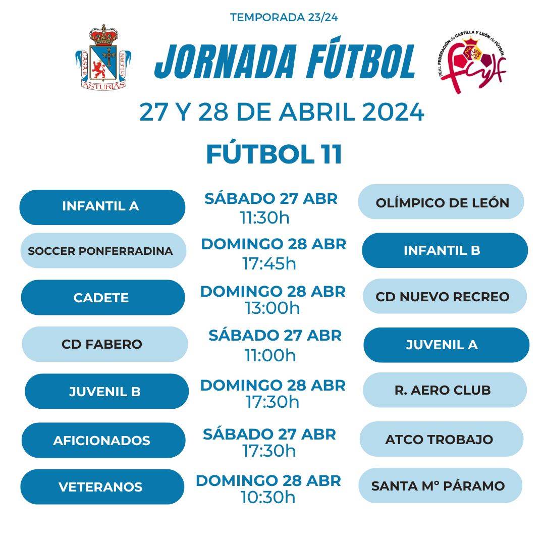 HORARIOS DEL FIN DE SEMANA DE LOS EQUIPOS DE FÚTBOL (27 Y 28 DE ABRIL) 25/04/2024 Estos son los horarios de nuestros equipos de fútbol para la jornada de este fin de semana :